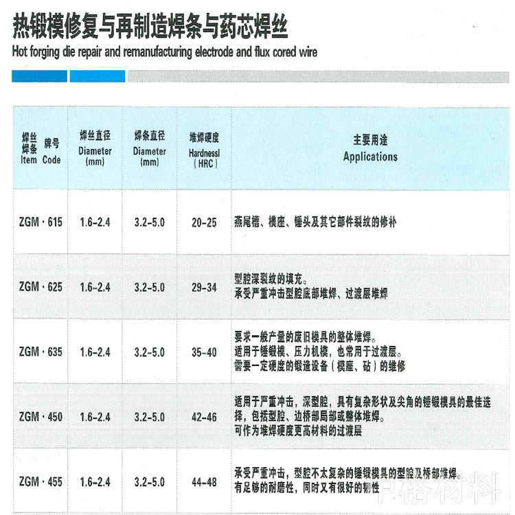 產(chǎn)品名稱:熱鍛模修復(fù)與再制造焊條與藥芯焊絲